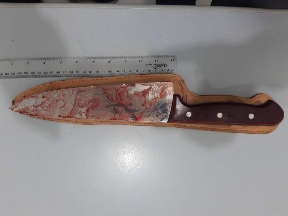 Os policiais localizaram a faca utilizada no crime e encaminharam o objeto juntamente com o autor do crime até à CPJ (Foto: Divulgação)