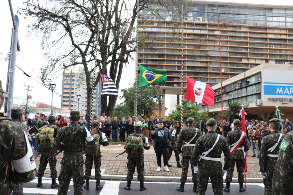 Na sequência, às 8h, é realizado o Desfile Cívico-Militar, com a participação de delegações do Tiro de Guerra, Polícia Rodoviária Federal, Polícia Militar, Polícia Rodoviária Estadual, Polícia Ambiental, Bombeiros, crianças da Rede Municipal e rede Estadual de Educação, instituições privadas de ensino, secretarias municipais e seus projetos, Apae, Amei, Grupo de Escoteiros Cristo Rei, Clube dos Aventureiros Formiguinhas e Panteras Kids, Clube dos Desbravadores Plus Ultra e Apocalypse, frotas da Prefeitura/Defesa Civil/ Programa Ronda Azul/Daem, Etec, Senai, Unimar, Clube do Opala Marília, Fusca Clube, Jeep Clube, Jipeiros, Grupo de Veículos Antigos 014, Moto Clube Águias de Cristo.