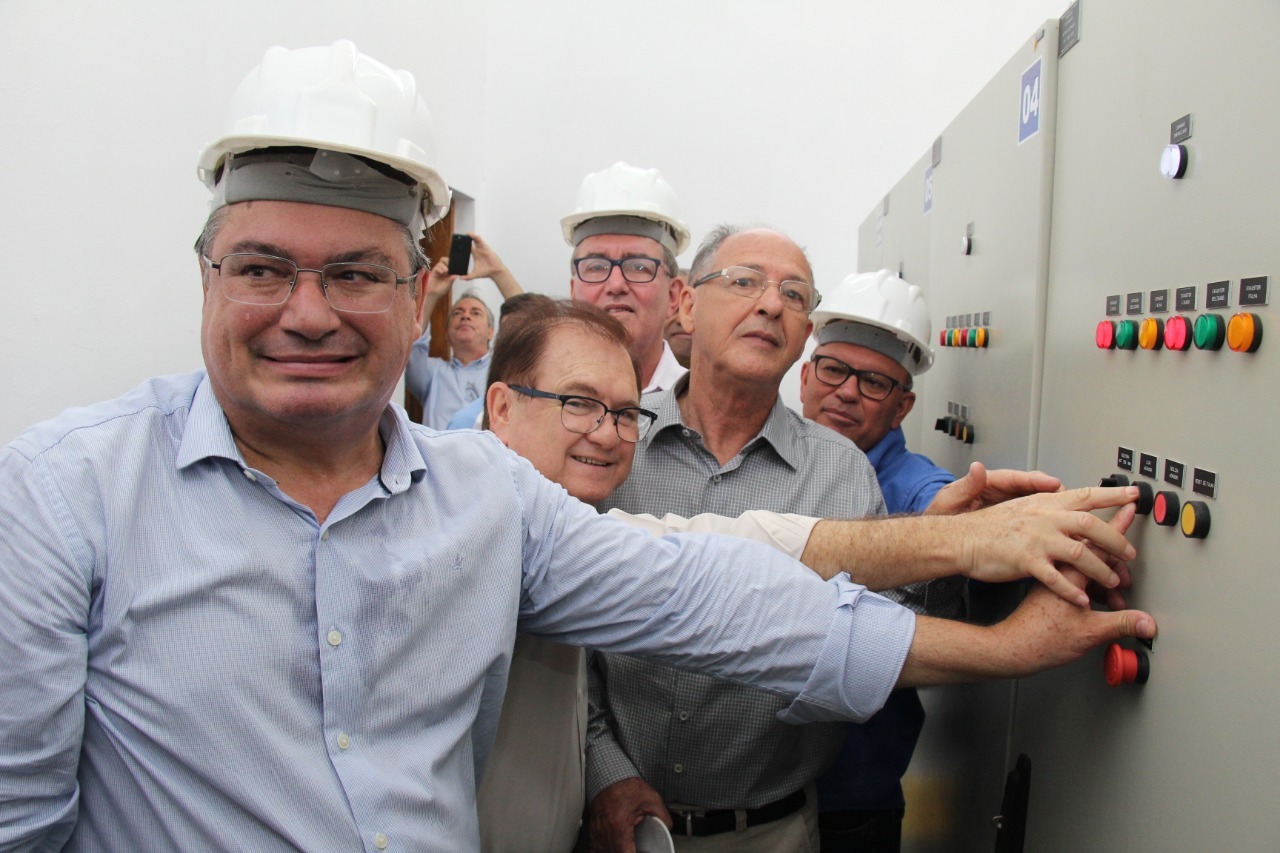 Prefeito Daniel Alonso (PSDB) liga as máquinas da ETE Barbosa (Foto: Édio Júnior)