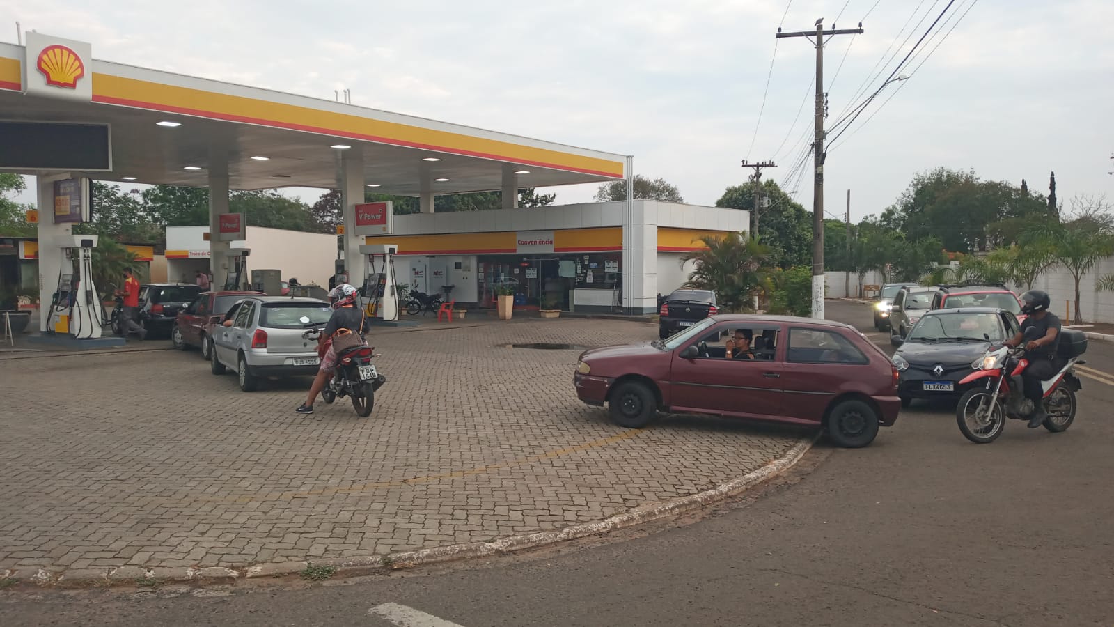 Posto com fila em Marília nesta quinta-feira (9) – (Foto: Carlos Rodrigues/Marília Notícia)