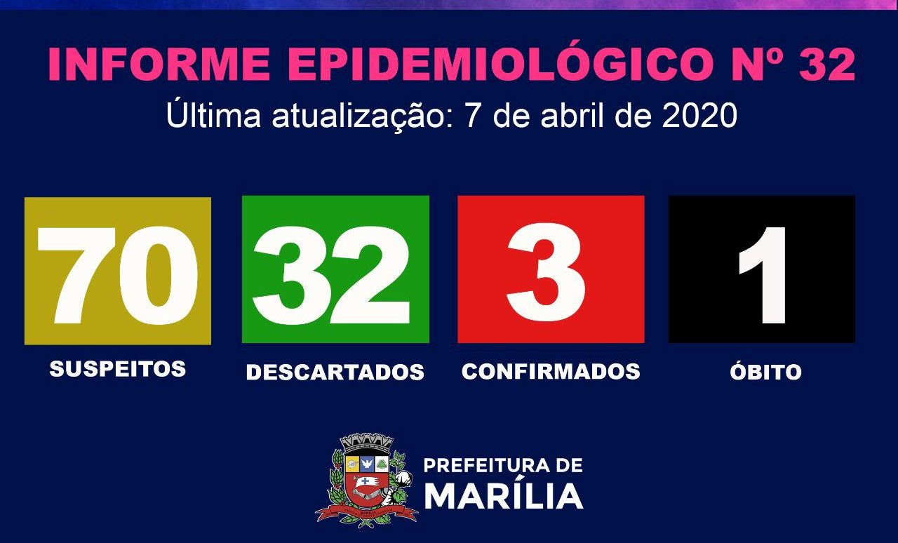 A Prefeitura de Marília, por meio da Vigilância Epidemiológica, divulgou na tarde desta terça-feira (7) um novo boletim sobre o coronavírus na cidade. O informe aponta que mais um caso da Covid-19, doença causada pelo vírus, foi confirmado. Com isso a cidade contabiliza três casos positivos.