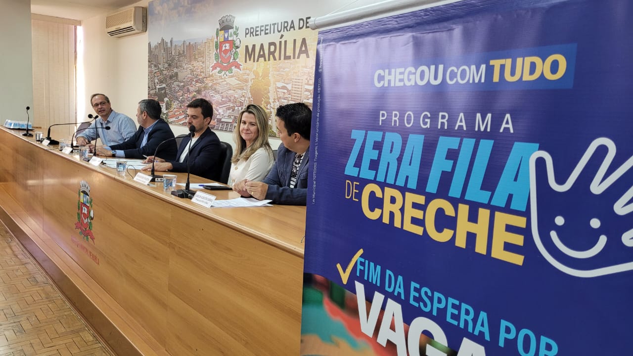 A Prefeitura de Marília lançou, na tarde desta quinta-feira (31), o programa Zera Fila de Creche, com o objetivo de eliminar a fila de espera por vagas nas unidades municipais de educação infantil. O anúncio foi feito pelo prefeito Vinicius Camarinha (PSDB) durante evento no auditório da administração municipal.
