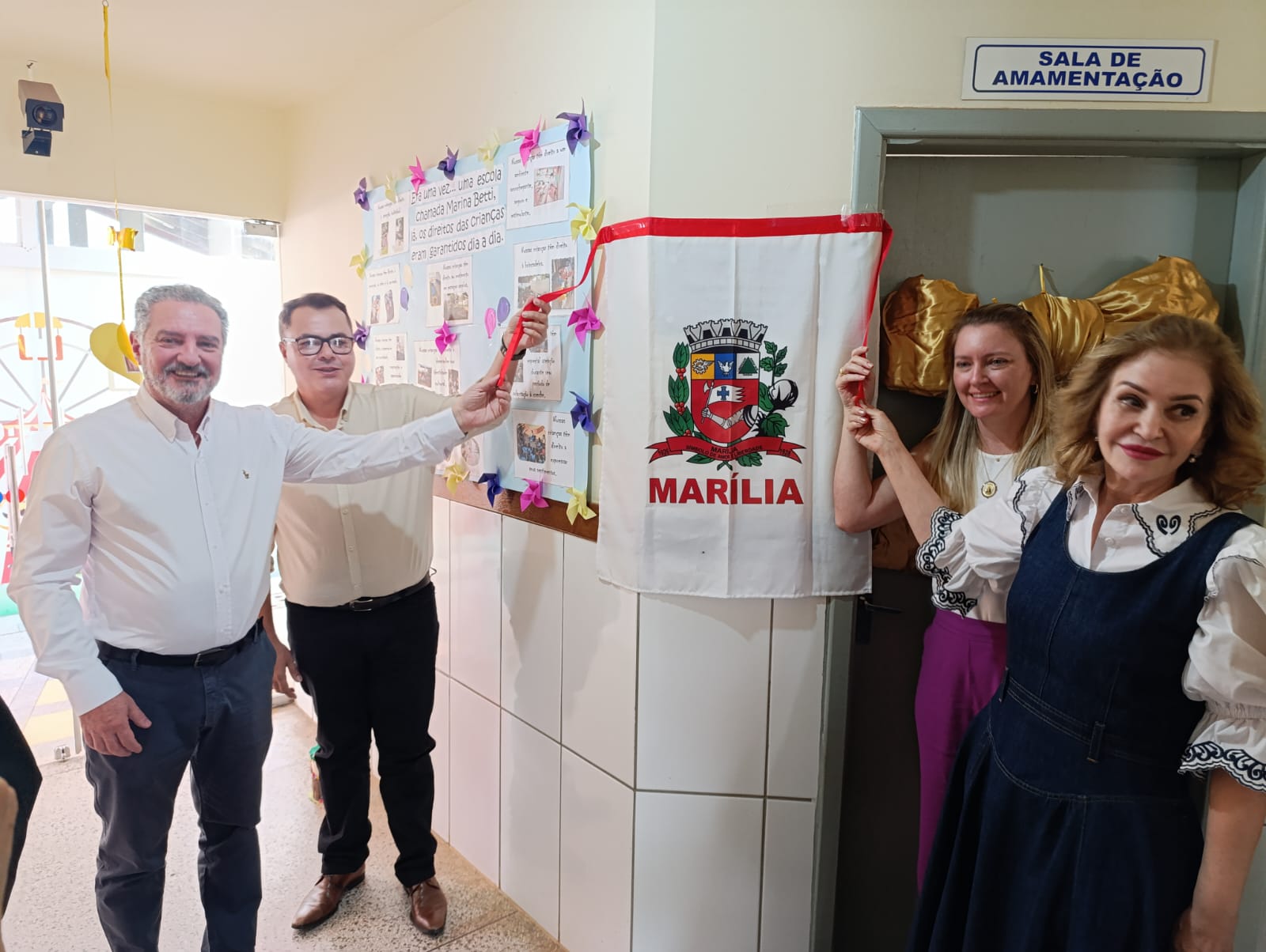 A solenidade de inauguração contou com as presenças dos secretários municipais Marcelo Gallo (Saúde) e Helter Bochi (Educação), que representaram o prefeito Daniel Alonso (PL), da supervisora do Banco de Leite Humano de Marília, Sandra Domingues, educadoras, servidores públicos, diretoras de escolas e convidados, entre eles, duas mães que estão amamentando. Uma delas, inclusive, é a diretora da escola, Cristiane Regina Sanches.