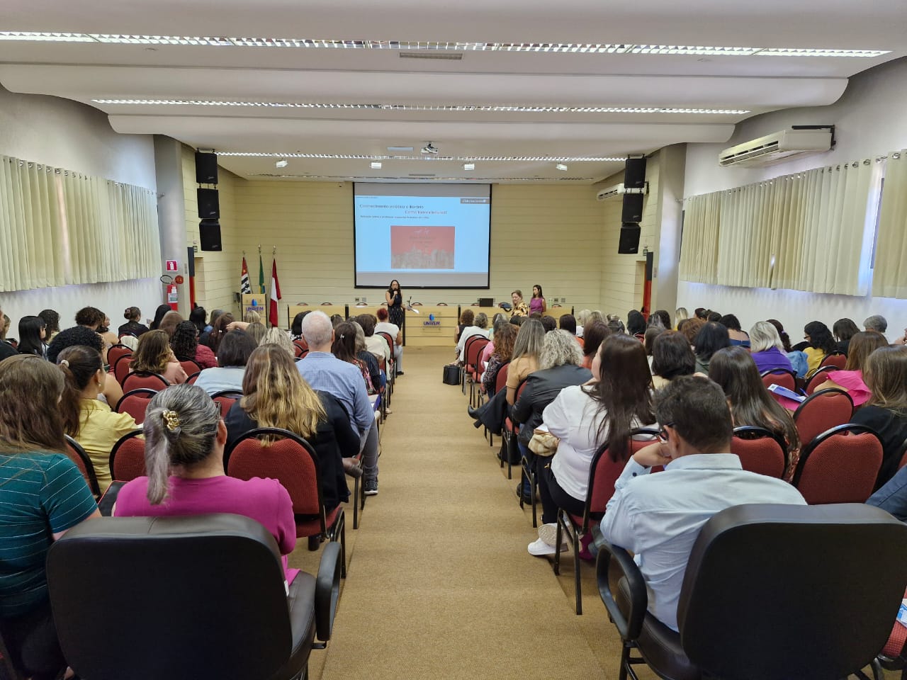 O evento desta quinta-feira foi realizado no auditório Shunji Nishimura, do Centro Universitário Eurípedes Soares da Rocha (Univem), e tem como objetivo a formação de docentes alfabetizadores para 1º e 2º anos do Ensino Fundamental. O encontro foi dirigido pelo Polo Regional 15, que é composto pelas cidades de Bauru, Botucatu, Jaú, Lins, Piraju, Marília e Avaré.