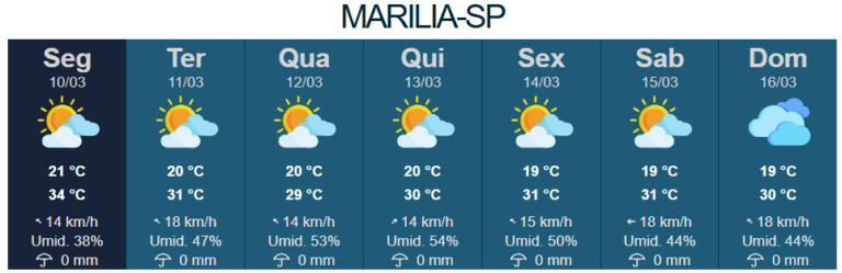 Depois de um fim de semana com temperaturas de até 35,9°C no termômetro, segundo o Instituto Nacional de Meteorologia (Inmet), Marília pode se refrescar nesta segunda-feira (10) em clima mais ameno e até com chuva.