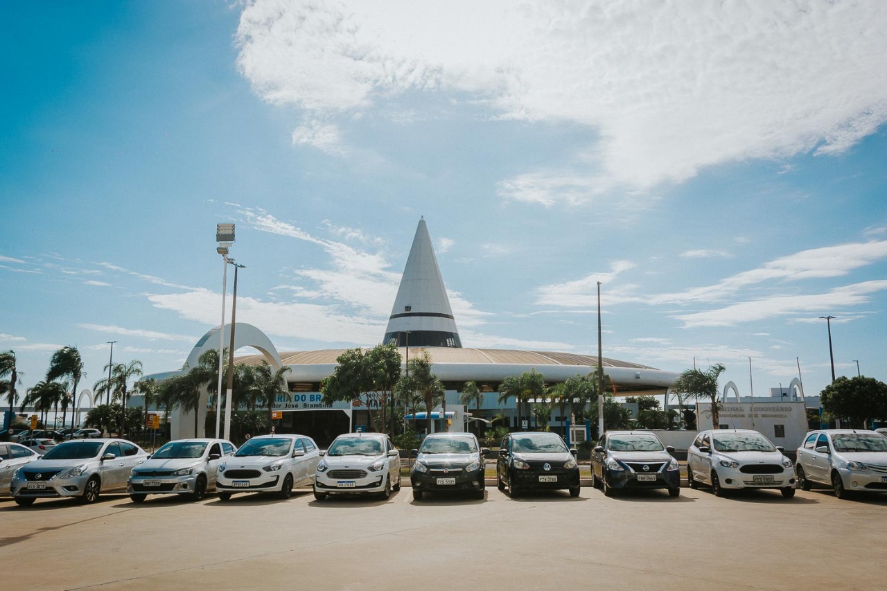 Veículos alinhados em frente à rodoviária (Foto: Divulgação)