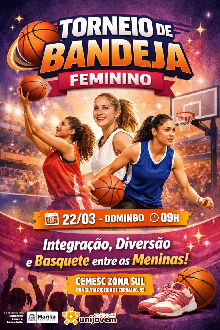 A Secretaria Municipal de Esportes, Lazer e Juventude (Selj) de Marília realiza, neste próximo domingo (22), a partir das 9h, o Torneio de Bandeja de Basquete Feminino no ginásio Cemesc zona sul, com participação de meninas de 10 a 13 anos.