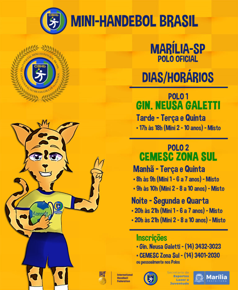 As vagas do mini-handebol são para meninas e meninos com idade entre seis e 10 anos, e as aulas para ambos os polos terão início na próxima segunda-feira (2).