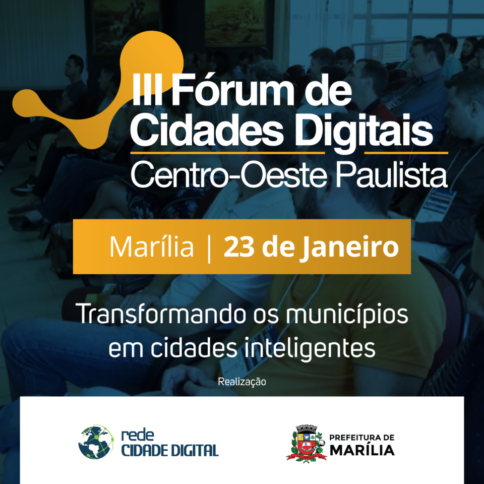 Marília será o primeiro município a receber, em 2020, a rodada de eventos de cidades inteligentes no estado de São Paulo. Já estão abertas as inscrições para o III Fórum de Cidades Digitais do Centro-Oeste Paulista, que acontece no dia 23 de janeiro, no Alves Hotel, a partir das 8h. A iniciativa é uma parceria entre a Prefeitura de Marília e a Rede Cidade Digital (RCD).