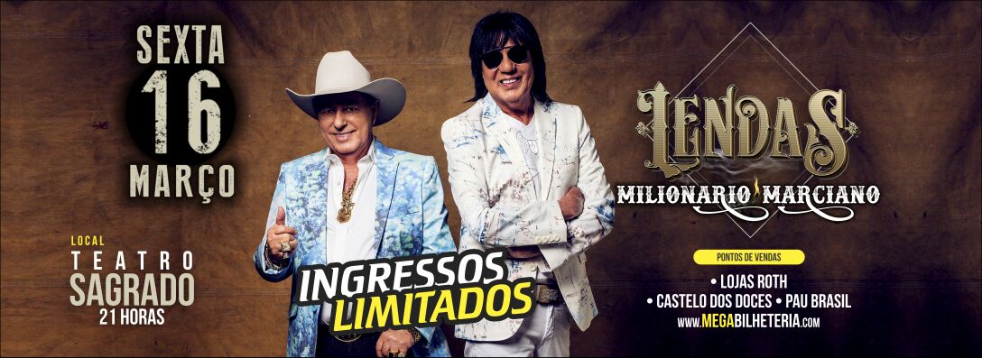 Marília recebe o show “Lendas”, da dupla sertaneja Milionário e Marciano, no próximo dia 16 de março, às 21h, no Teatro Sagrado Coração, localizado na avenida Nelson Spielmann, número 746.