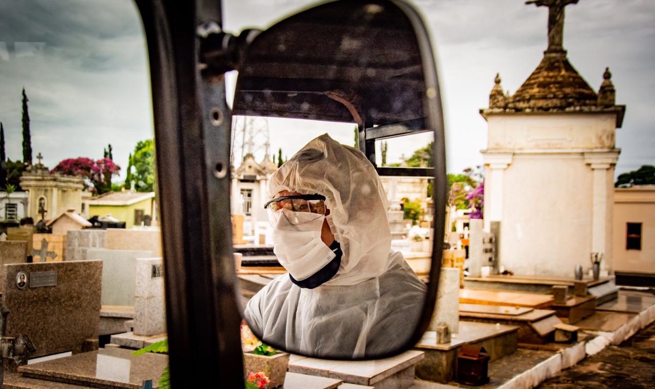 Trabalhador dos serviços funerários em Marília (Foto: Wellington O. dos Santos/Índio Fotos/Relatos de uma Pandemia)