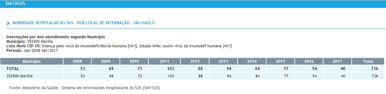 No entanto, é importante destacar que após revisão os números de 2016 e 2017 podem subir e não estão elencados entre eles os óbitos que envolvem a Aids fora dos hospitais. Ou seja, sem que a vítima estivesse internada quando morreu.