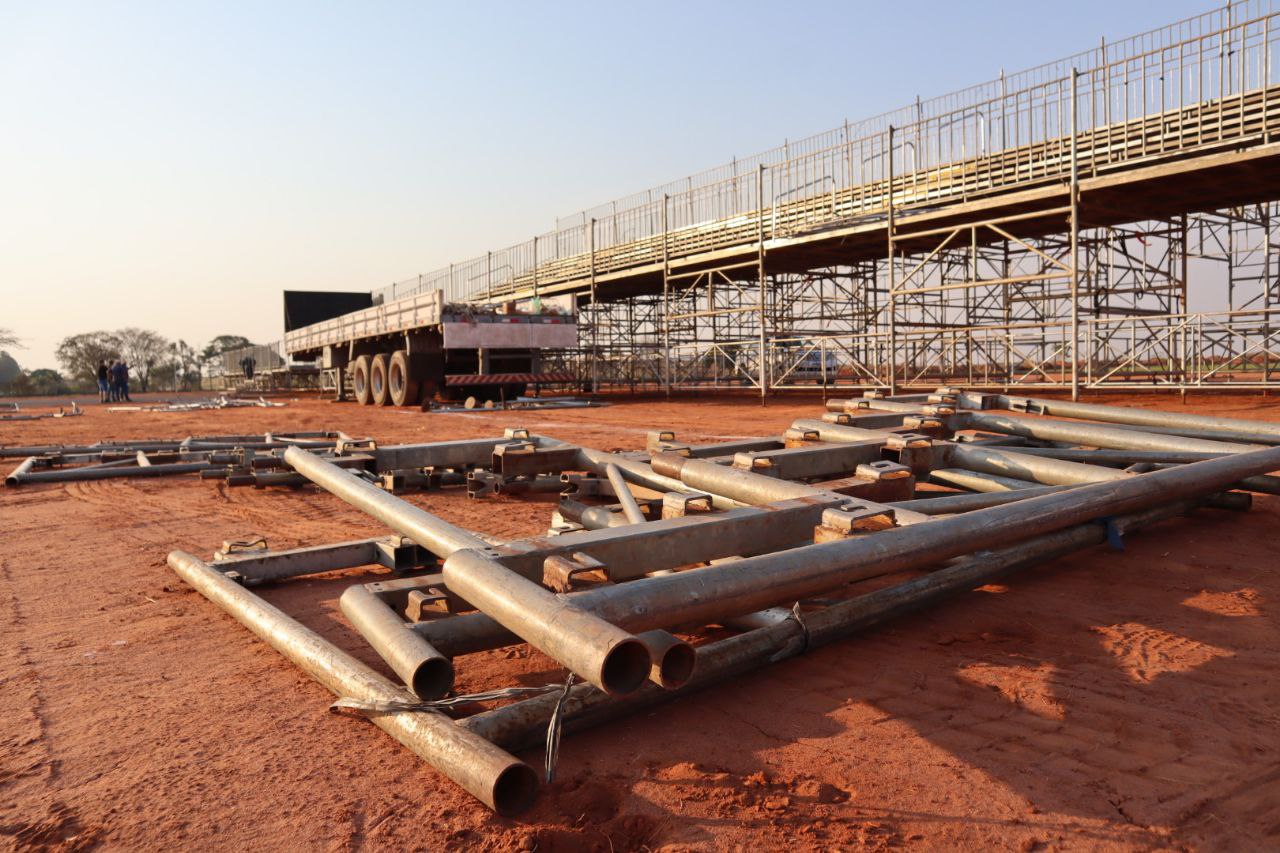Os camarotes e a arquibancada já começaram a ser erguidos. O espaço também está recebendo asfalto em alguns setores, como na ampla praça de alimentação que será montada. A festa vai contar com as apresentações de Ana Castela, Lauana Prado e DJ Pedro Sampaio.