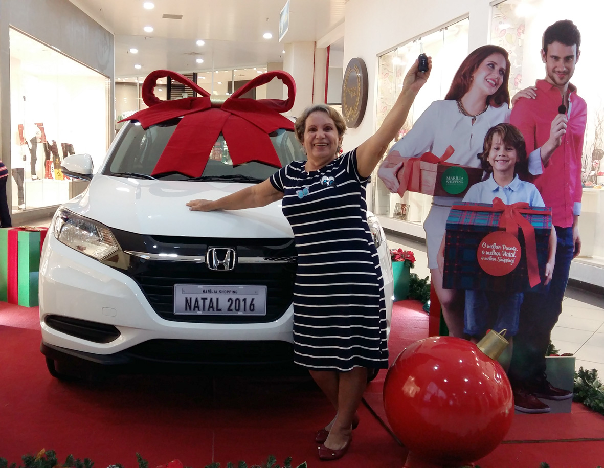 Dona Maria, ganhadora do Honda HR-V 0Km, da campanha de Natal do Marília Shopping.
