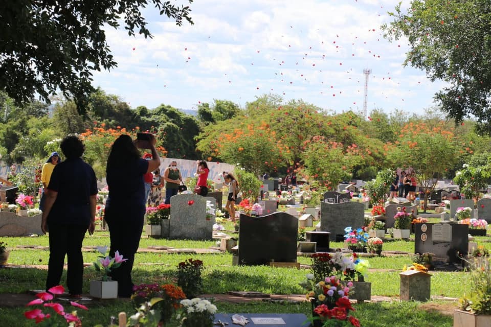 Uma chuva de pétalas de rosas vermelhas e brancas despejadas de um helicóptero surpreendeu os marilienses que visitaram o Cemitério da Saudade, na zona Oeste de Marília, nesta terça-feira (2), feriado do Dia de Finados.