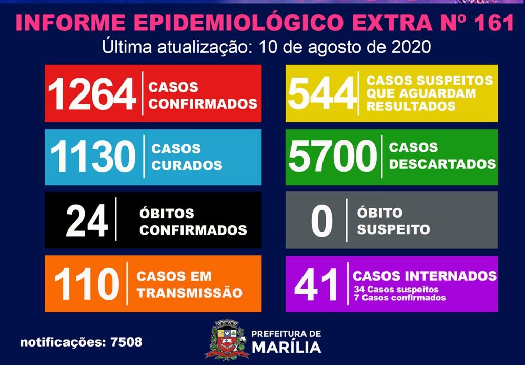 A Prefeitura de Marília, em boletim epidemiológico extraordinário divulgado na tarde desta segunda-feira (10), confirmou a morte de mais dois pacientes com Covid-19. Com os novos casos, o total de óbitos pela doença chegou a 24 na cidade.