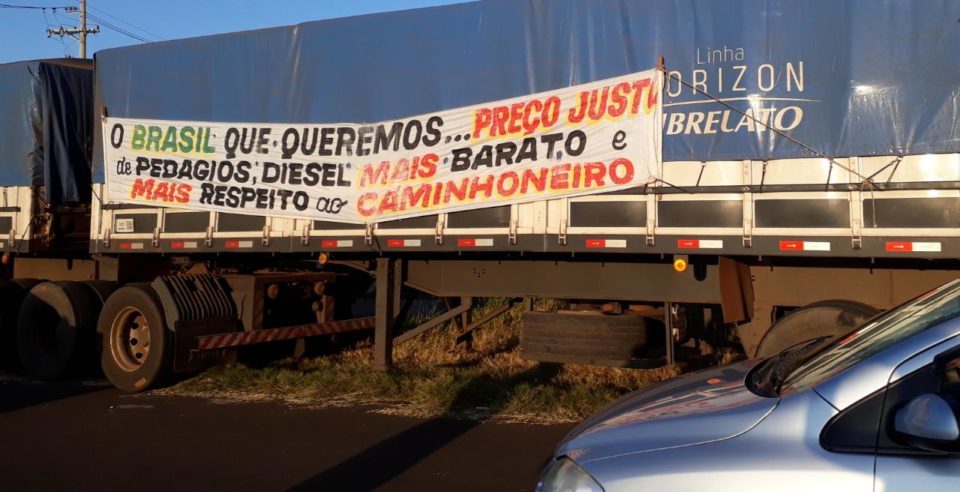 Faixa durante greve dos caminhoneiros pede diesel mais barato (Foto: Arquivo)