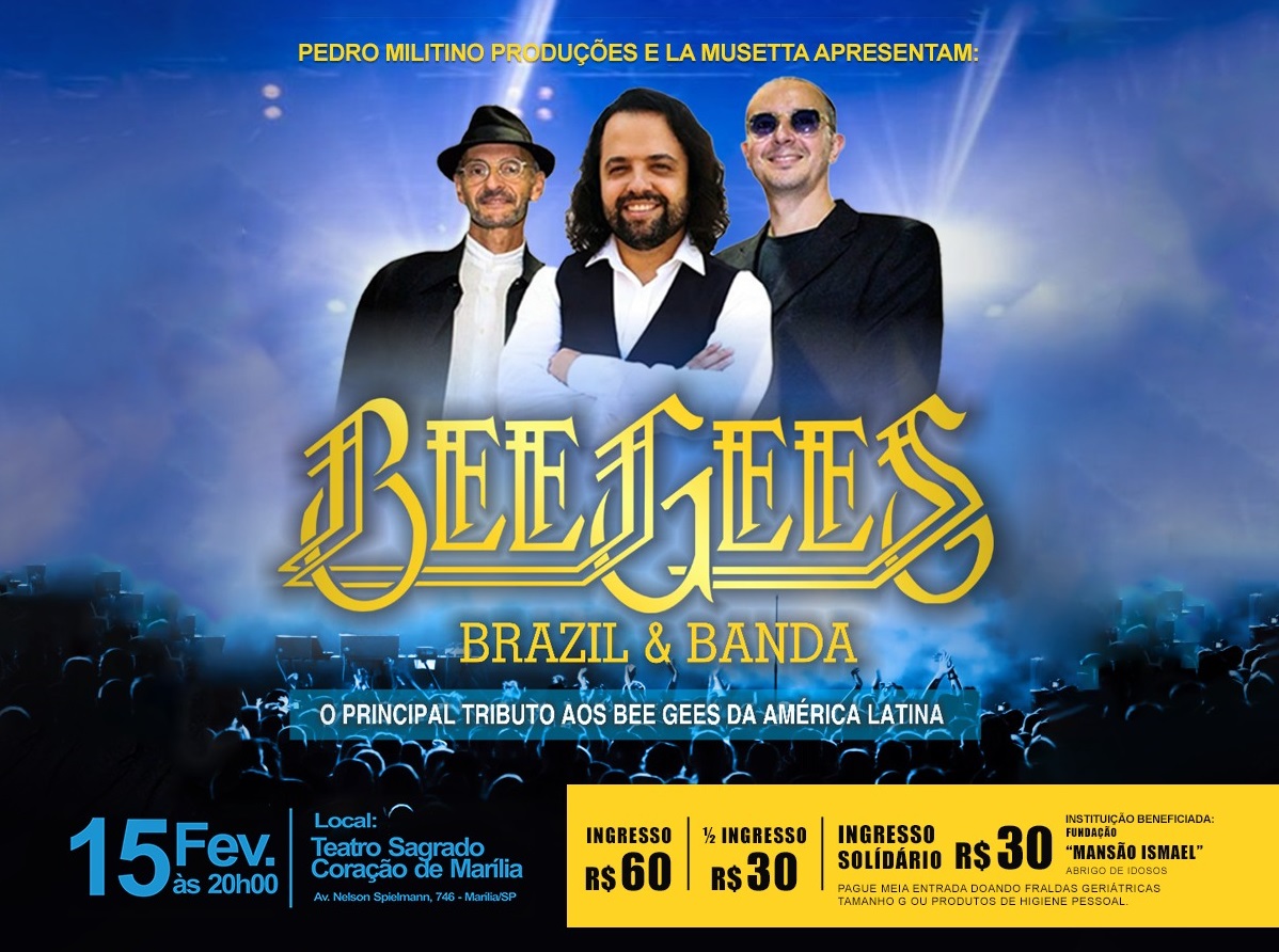 O show em homenagem aos irmãos Barry, Robin e Maurice, reviverá grandes sucessos, como ‘Stayin’Alive’, ‘How Deep Is Your Love’, ‘I Started a Joke’ e ‘Nigth Fever’, e arrecadará fraldas geriátricas e produtos de higiene pessoal através do ingresso solidário.
