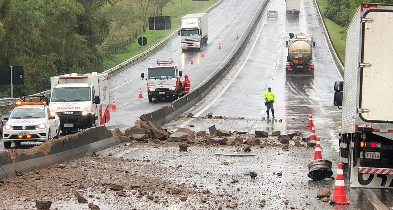 Também chovia intensamente durante o momento da colisão e o local precisou ser sinalizado por policiais rodoviários.
