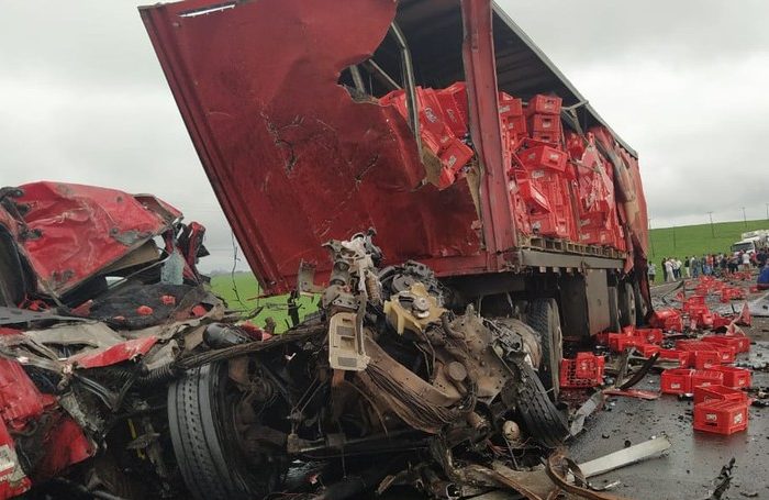 Um caminhão carregado com bebidas teria invadido a pista contrária e atingiu a lateral de outro caminhão. Em seguida esse veículo com bebidas bateu de frente com uma carreta que estava carregada com bobinas de plástico, onde estava o mariliense.