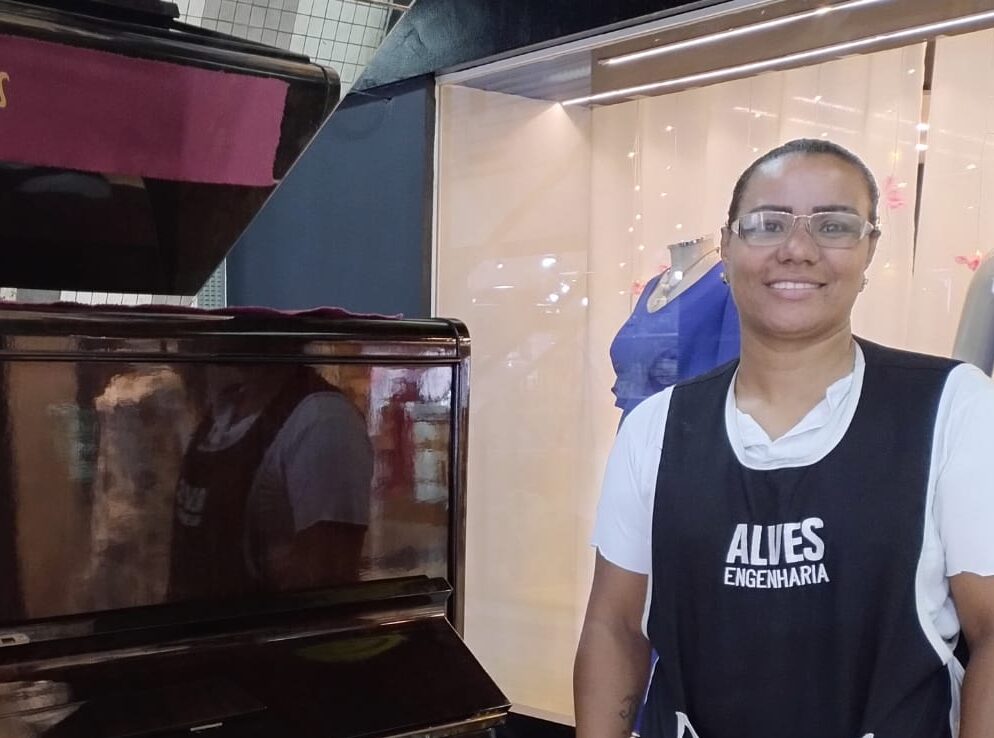 Geruza Santos viralizou ao cantar com pianista em situação de rua no Shopping Atenas (Foto: Rodrigo Viudes/Marília Notícia)