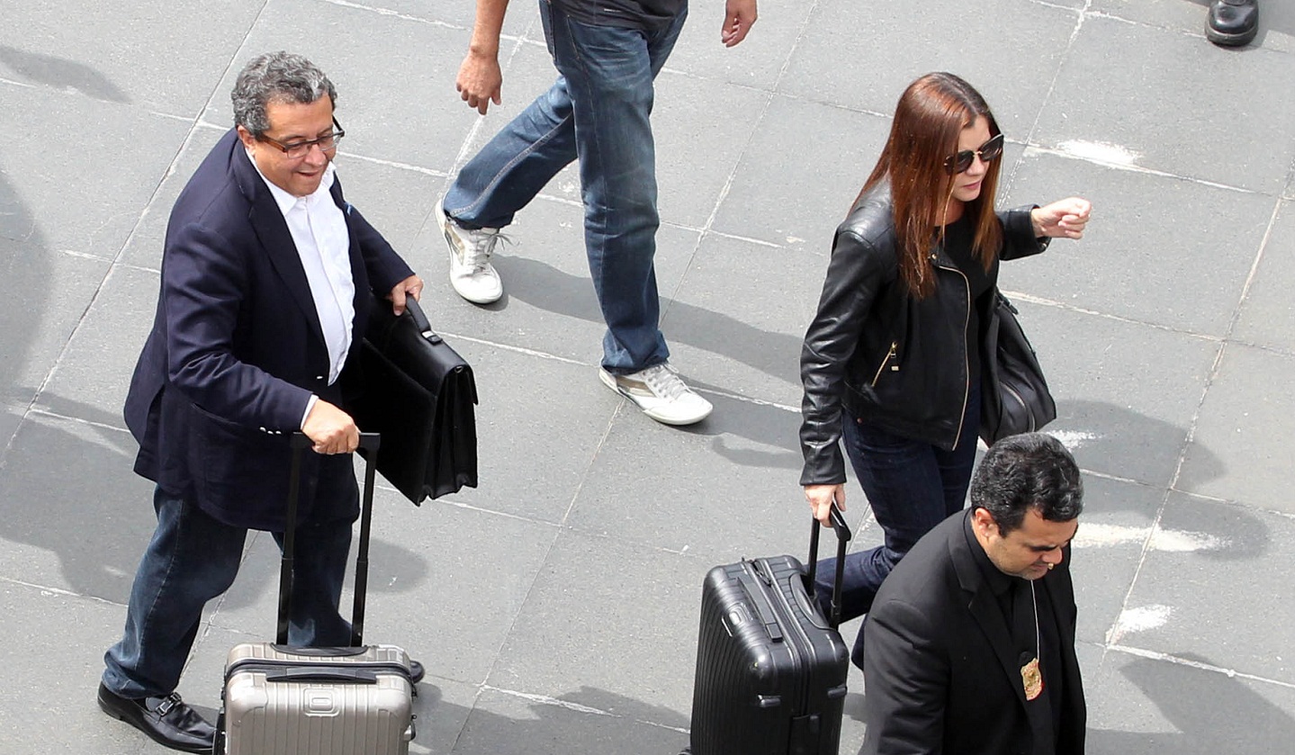 SP - LAVA JATO/JOÃO SANTANA/DESEMBARQUE - POLÍTICA - O marqueteiro do PT, João Santana, acompanhado de sua mulher Monica Moura, desembarca no Aeroporto de Cumbica, em Guarulhos, na Grande São Paulo, nesta terça-feira (23), um dia depois de ter a prisão decretada pela Justiça. A Polícia Federal suspeita que parte de seus recursos tenham origem no esquema de corrupção na Petrobras investigado na Operação Lava Jato. Santana e a mulher, que também teve a prisão decretada na segunda- feira (22), estavam na República Dominicana, onde participavam da campanha de reeleição do presidente do país. 23/02/2016 - Foto: FELIPE RAU/ESTADÃO CONTEÚDO