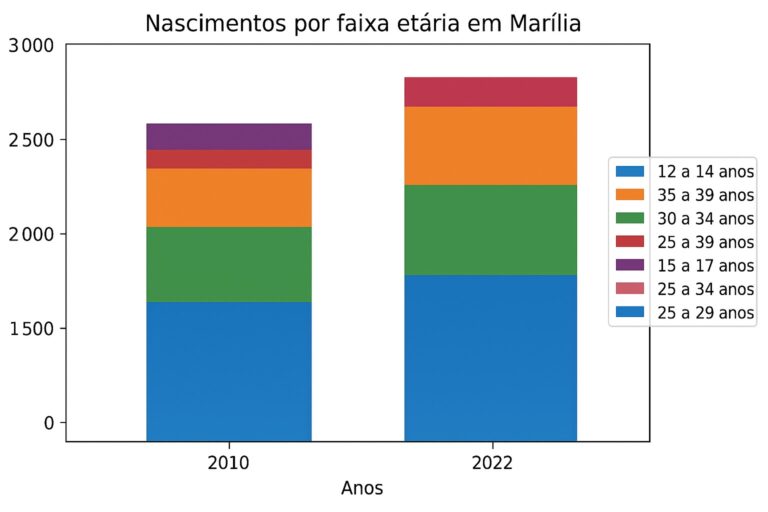 Em relação ao total de mulheres que já tiveram filhos, os números também mostram crescimento. Em 2010, Marília contabilizava 62.452 mulheres com filhos nascidos vivos. Doze anos depois, o número subiu para 71.162.