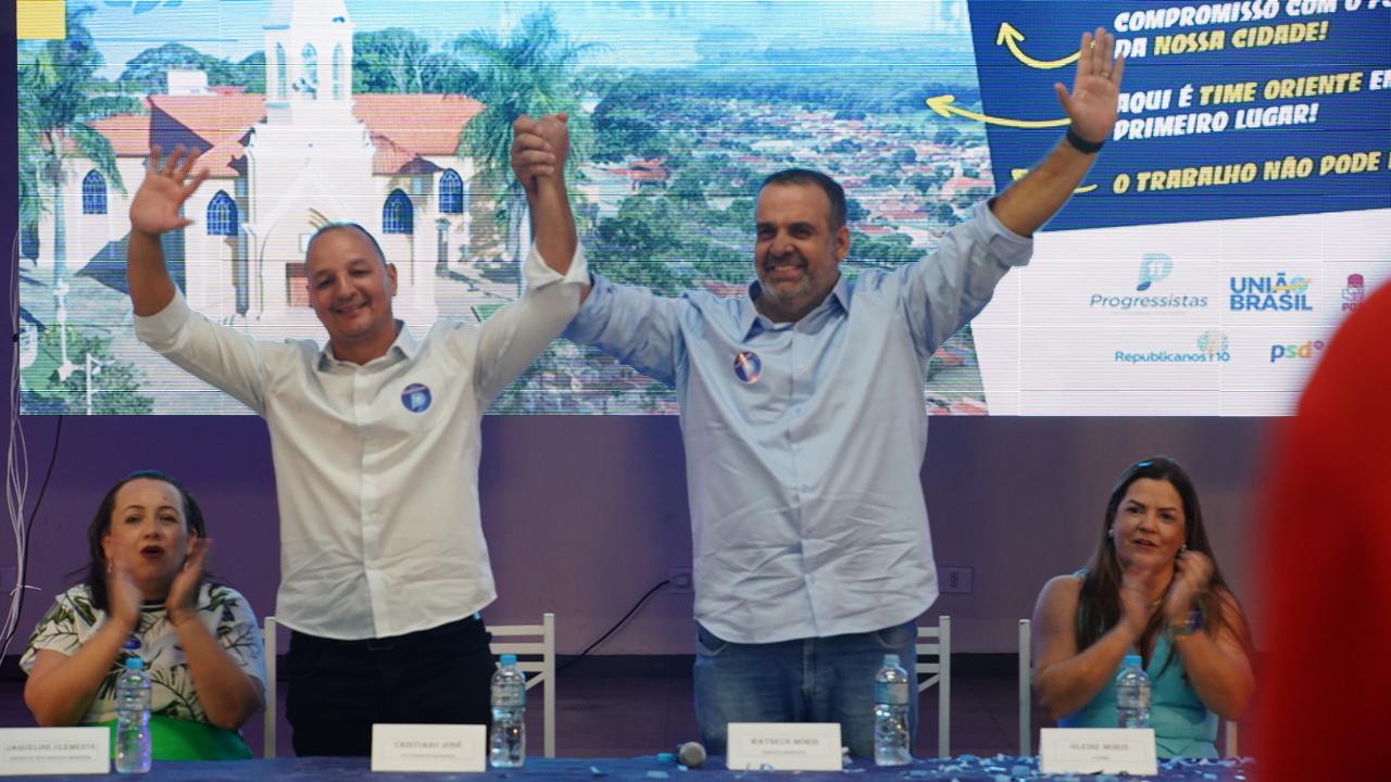 O atual prefeito e vice-prefeito de Oriente, Matheus Moris (Progressistas) e Cristiano José dos Santos (União Brasil),respectivamente, foram confirmados como candidatos à reeleição no município após convenção partidária, realizada na última quinta-feira (1º), no salão do CCI. É a única candidatura para o Executivo municipal até o momento.