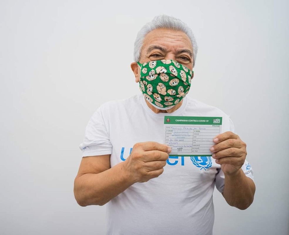 A primeira dose do desenhita foi em fevereiro, quando ele usou uma máscara com estampa do personagem Cebolinha e uma camiseta do Fundo das Nações Unidas para a Infância (Unicef). “Oba. Dia da minha vacina! Estou muito feliz. Cuido da minha saúde e de quem está perto de mim”, escreveu Mauricio na época.