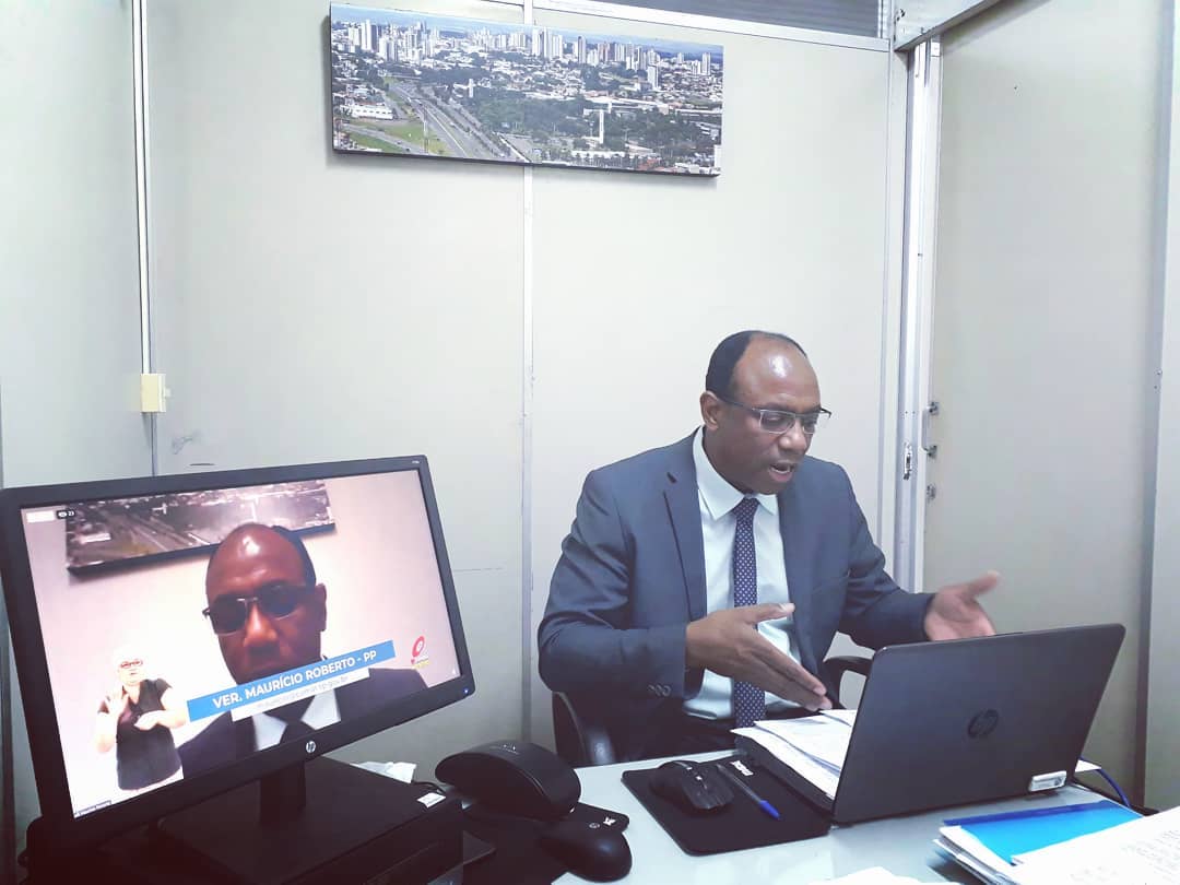 Vereador em seu gabinete, durante sessão remota (Foto: Divulgação/Assessoria)