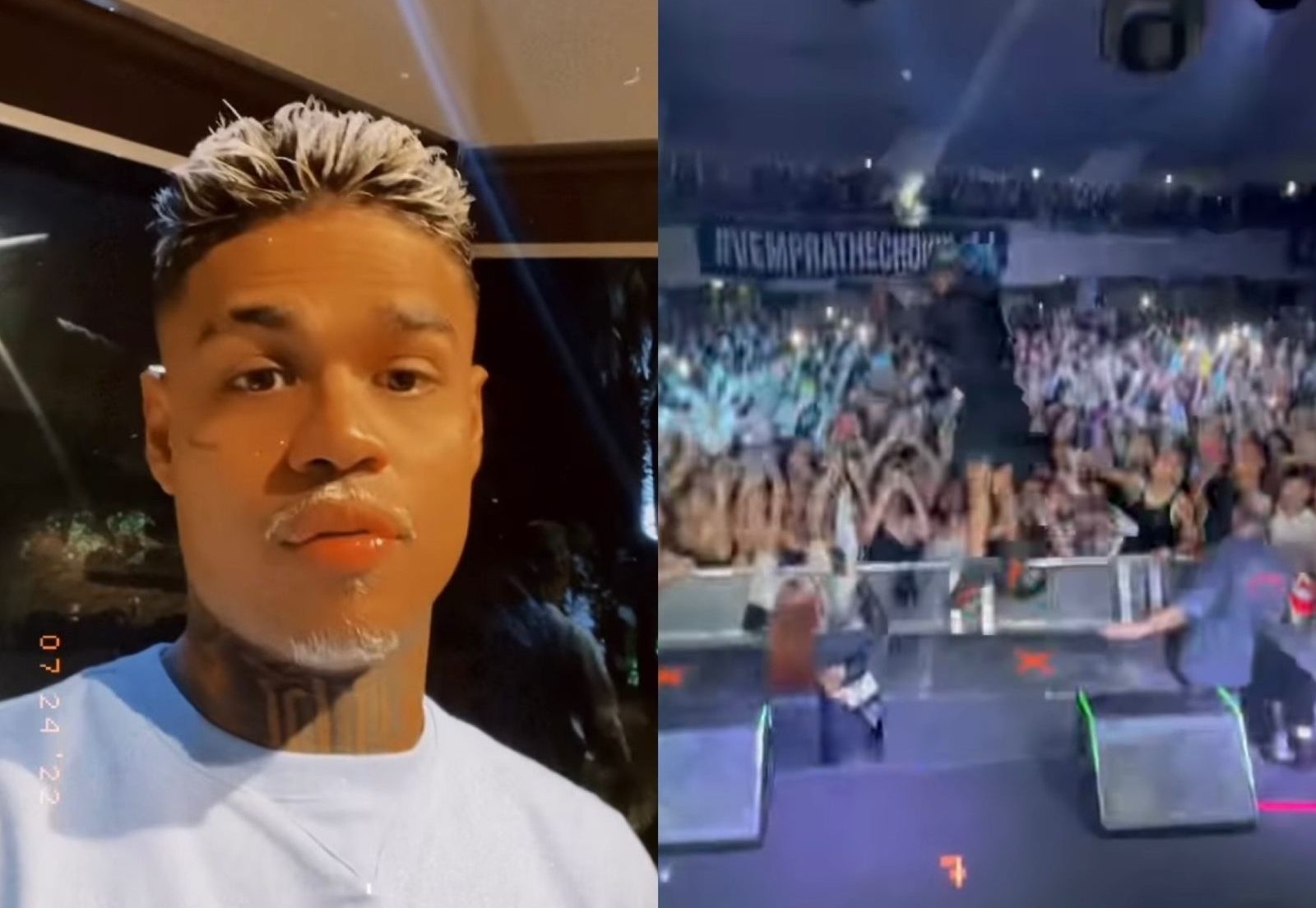 Após um vídeo do momento circular pelas redes sociais, o MC usou seu Instagram para detalhar o ocorrido e informar que, apesar do susto, passa bem. “Tava fazendo o meu show na The Choice, eu inventei de pular no público. Como geral fala, como já fiz outras vezes, mas dessa vez deu ruim de verdade, mano. Eu comuniquei meus seguranças. Falei ‘ó, vou pular, fica na atividade que eu vou pular no meio do público’. Quando eu pulei, esquece”, iniciou o cantor nos Stories.
