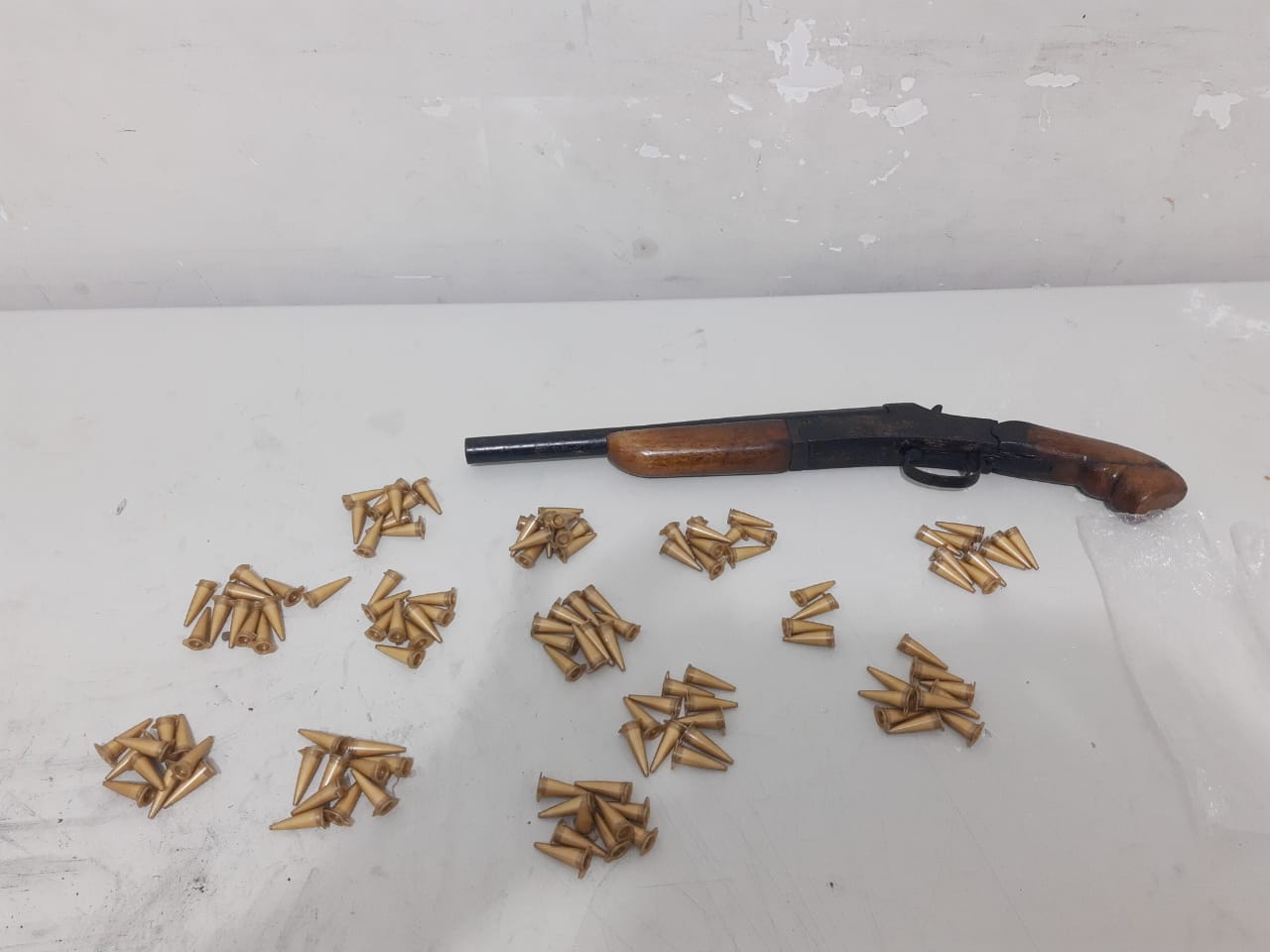 O homem foi identificado como Jeferson e no saco plástico estavam 123 pinos de cocaína. Com o mecânico também foi apreendido um celular. No porta malas do automóvel havia uma espingarda calibre 28.