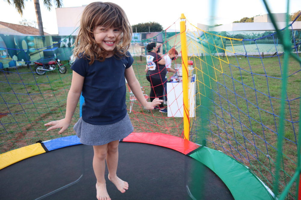 Cama elástica fez a diversão das crianças no espaço kids montado pela Imobiliária União (Foto: Alcyr Netto/Marília Notícia)