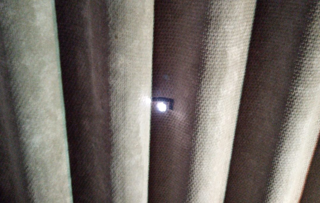 A avó observou que era um furo e ao chegar no quarto da neta encontrou um projétil de arma de fogo.