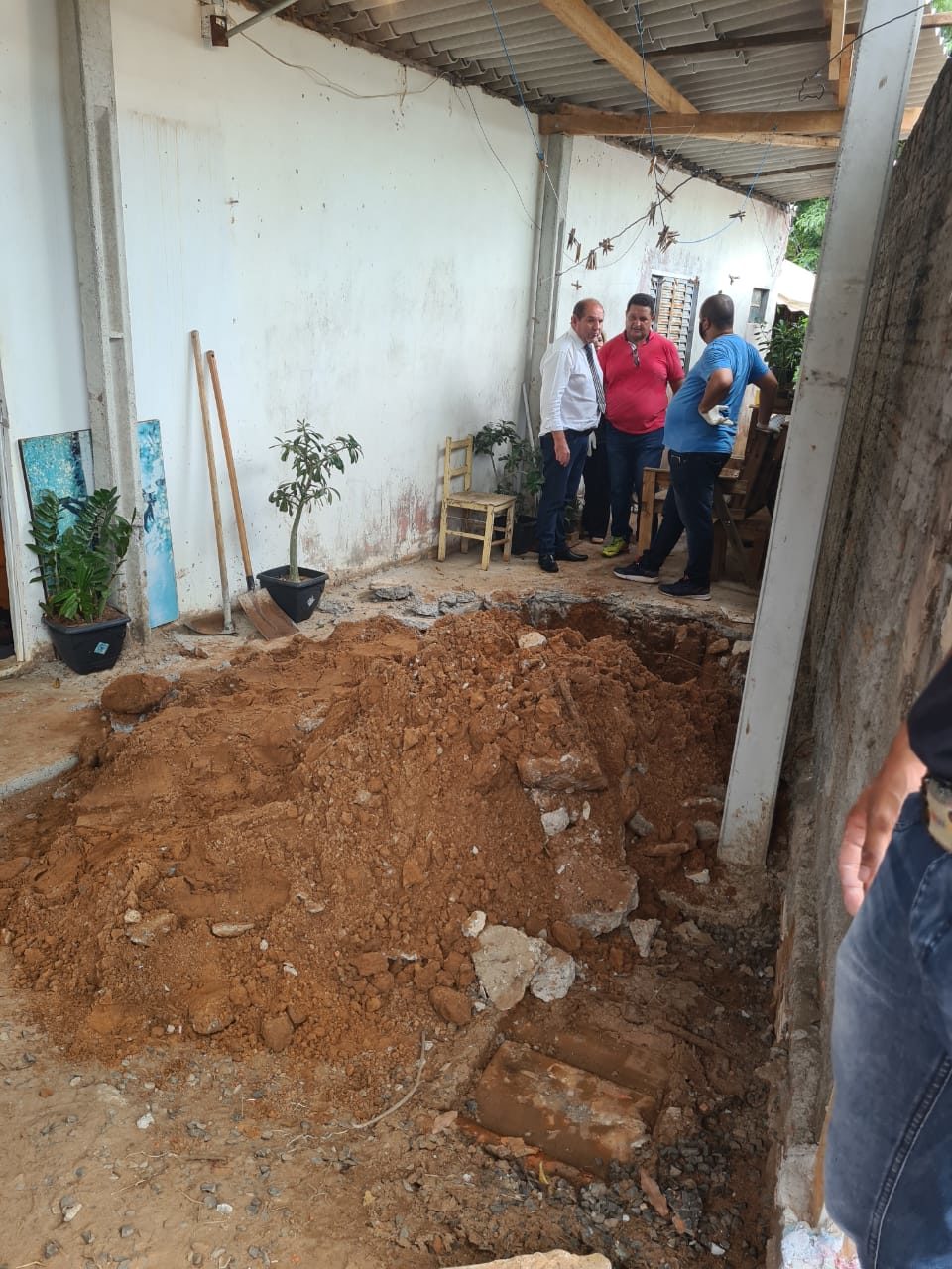 A descoberta gerou desconfiança da polícia, que foi até a residência e notou um novo concreto no quintal, reforçando ainda mais a hipótese de um possível crime.