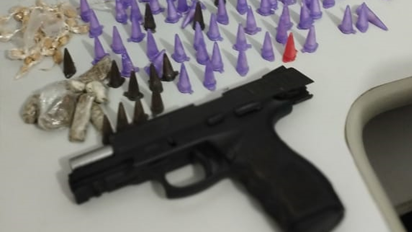 Arma de fogo e entorpecentes foram apreendidos durante diligências que investigavam homicídio no Argollo Ferrão (Foto: Divulgação/Polícia Civil)