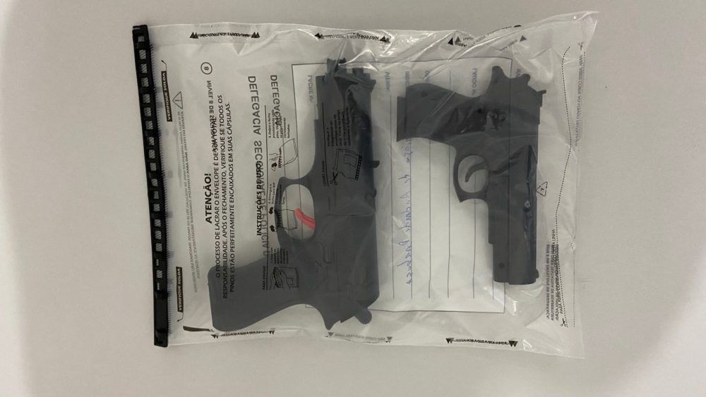 A dupla foi localizada com as armas que disparam bolinhas na cintura. Ambos alegaram que iam brincar com os objetos.