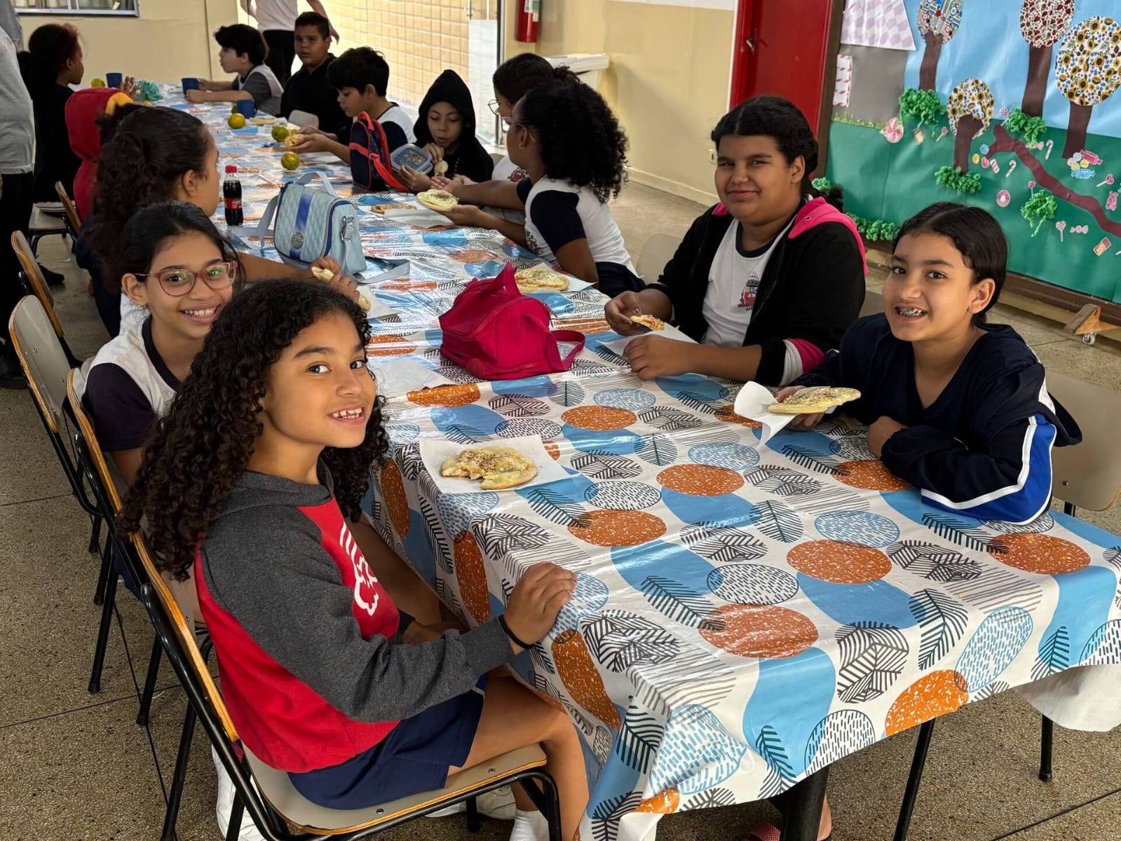 Segundo a Secretaria da Educação, o cardápio foi diferenciado por etapas de ensino: nas EMEIs, foram servidos minipizza de frango com queijo, pão de queijo, bolo de cenoura e iogurte; nas EMEFs, os estudantes receberam X-salada, cachorro-quente, bolo de cenoura e iogurte. Já os alunos da rede estadual contemplados pelo município também tiveram acesso aos lanches quentes.