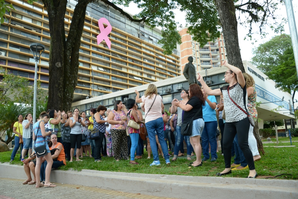 Manifestação reuniu dezenas de merendeiras contra atraso no salário. (Foto: Leonardo Moreno)