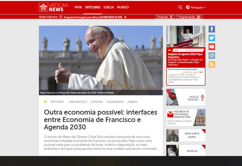 O estudo aborda as possibilidades apresentadas para a transformação econômica do mundo proposta pelo Papa Francisco. A publicação se deu após a leitura do artigo pelo próprio Pontífice.