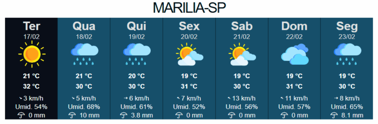 A previsão do tempo indica mudança nas condições climáticas em Marília a partir desta quarta-feira (18), com o retorno das chuvas após o período de Carnaval.