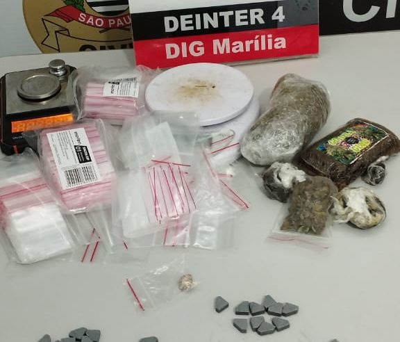 Além das drogas, os policiais civis também encontraram duas balanças de precisão e diversos saquinhos plásticos transparentes vazios com fechamento “zip lock” no imóvel.