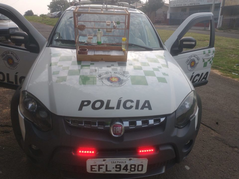 A Polícia Ambiental fazia patrulhamento pelo bairro, quando se deparou com uma gaiola com um pássaro da espécie coleirinho-papa-capim, sem anilha de identificação, que estava pendurada em um poste, em frente a uma residência.