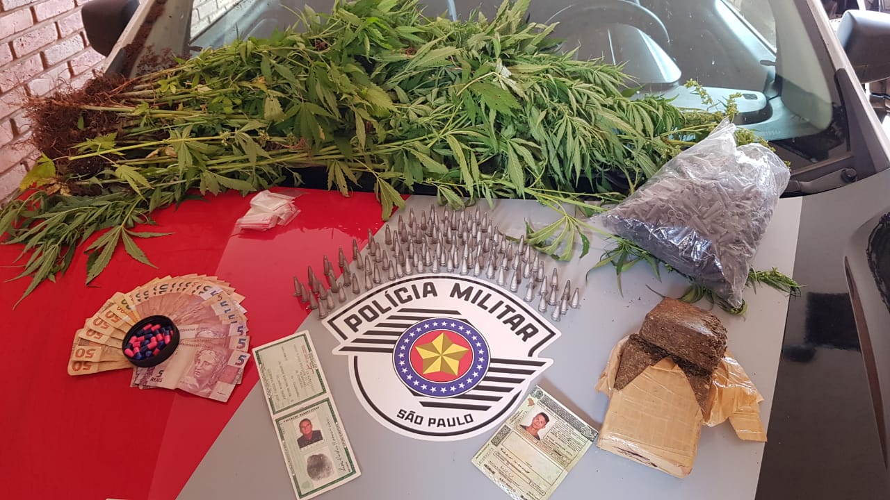 Foram apreendidos 68 pés de maconha e 714 gramas da droga, 22 comprimidos e 104 pinos com cocaína. Segundo a Polícia Militar, equipes do Policiamento Ambiental efetuaram uma operação na zona Rural do município.