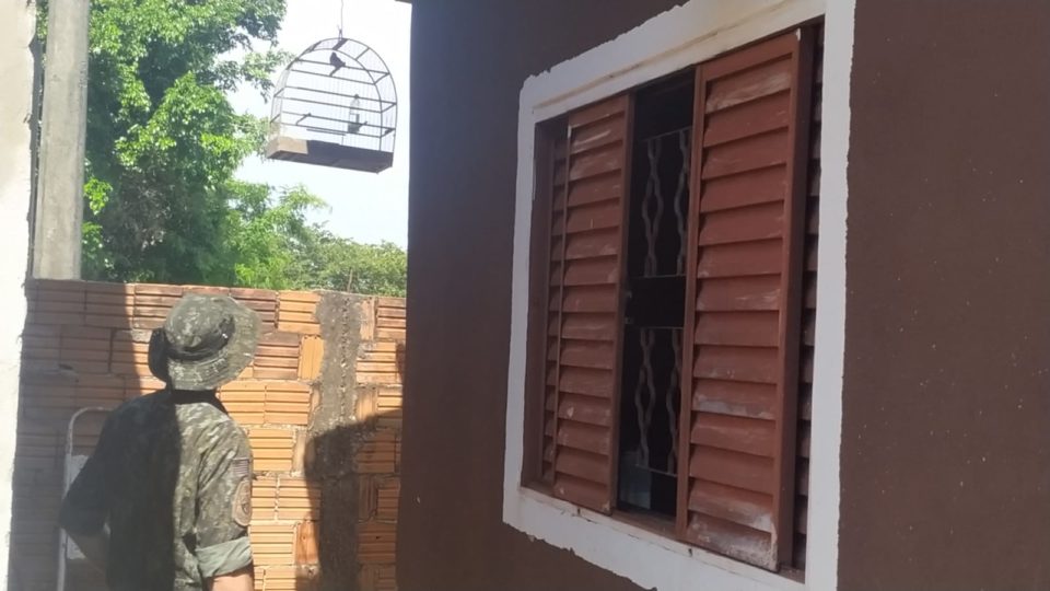 Segundo a Polícia Ambiental, durante patrulhamento uma equipe avistou duas gaiolas penduradas em uma casa, contendo duas aves das espécies gaturamo-verdadeiro e coleirinho-papa-capim.