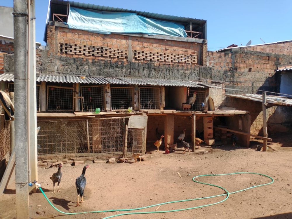 No local, os policiais verificaram a presença de 14 galos índio, com diversos indícios da prática, tais como esporas serradas, penas da coxa e abdômen arrancadas e cristas e barbelas amputadas. O local onde os animais estavam também desprovia de asseio. Eles não conseguiam se locomover.