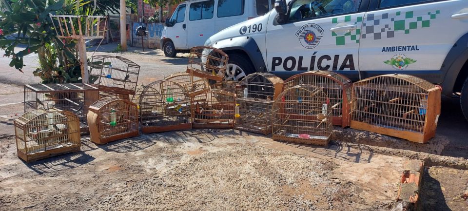 A Polícia Ambiental multou o dono de uma residência por manter aves em cativeiro, nesta terça-feira (13), na Vila Real, zona Sul de Marília.