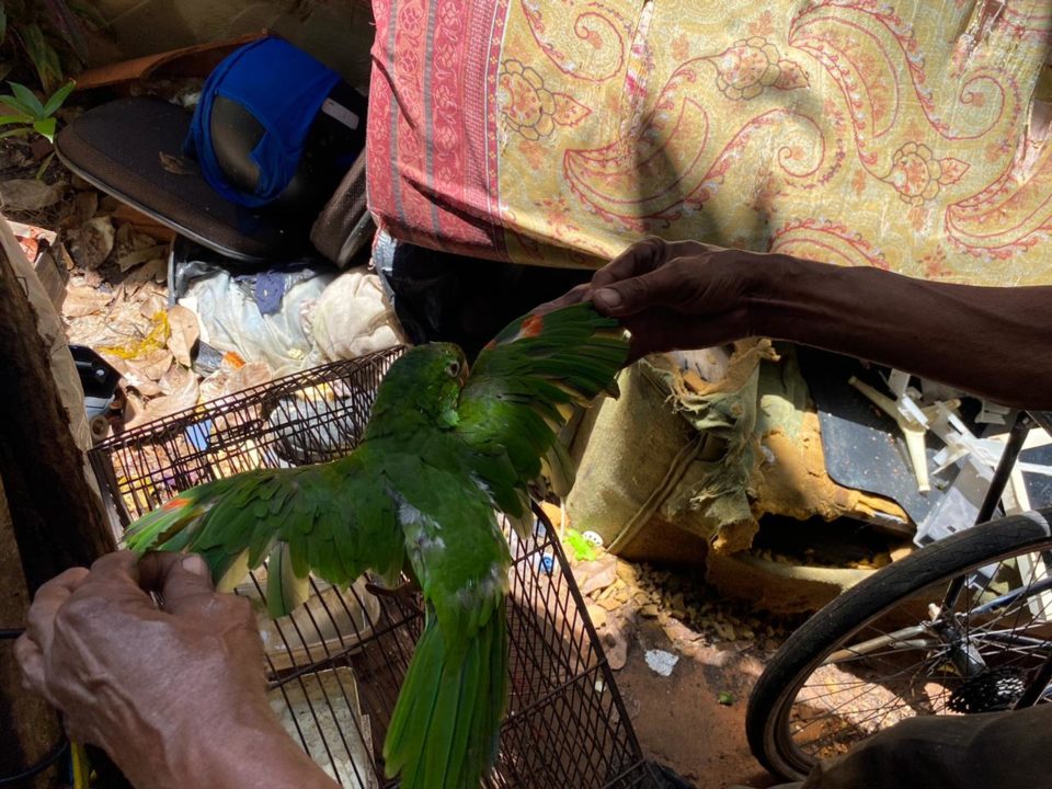 A Polícia Ambiental, em apoio a ONG Spaddes, se deslocou até a rua Francisco dos Santos, onde foi verificada a manutenção em cativeiro de um periquitão-maracanã sem autorização do órgão ambiental competente.