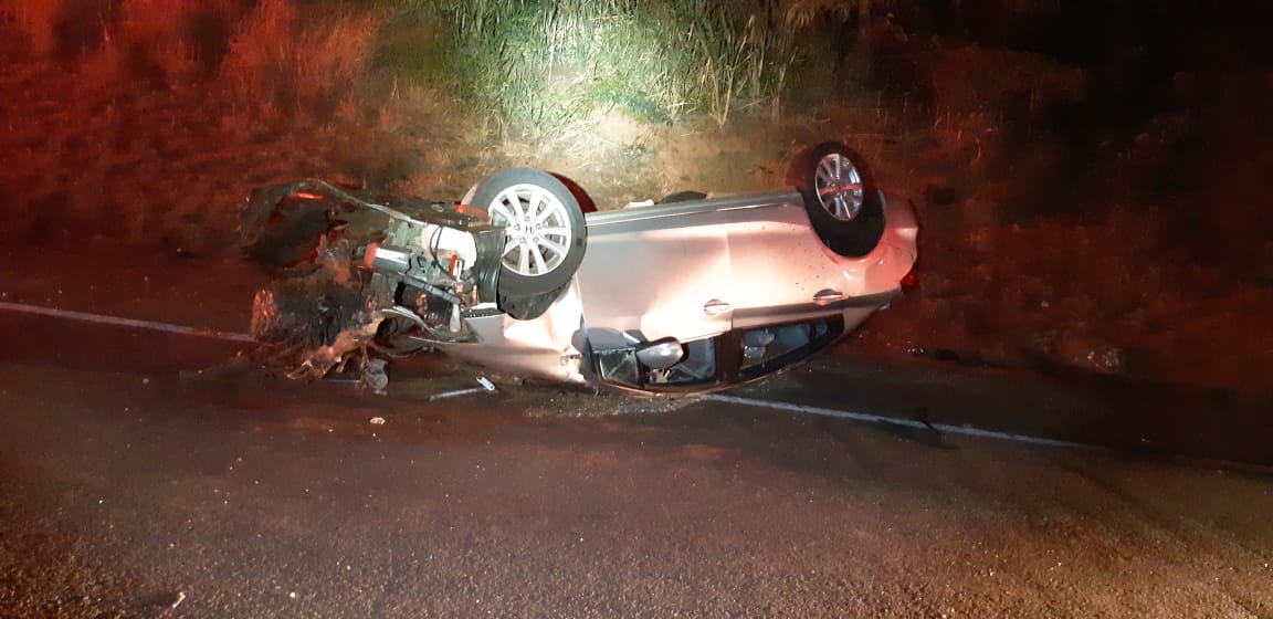 Honda Civic capotou após colisão frontal com ônibus na BR 153 (Foto: Divulgação)