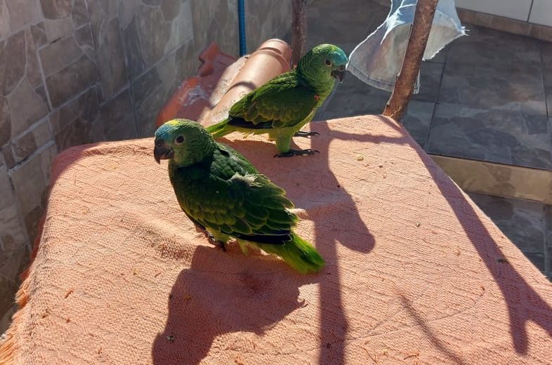 Na casa, havia dois papagaio-verdadeiro, ainda filhotes, estando um deles com as asas cortadas, tendo em vista já estar iniciando voos, configurando assim a situação de maus-tratos.